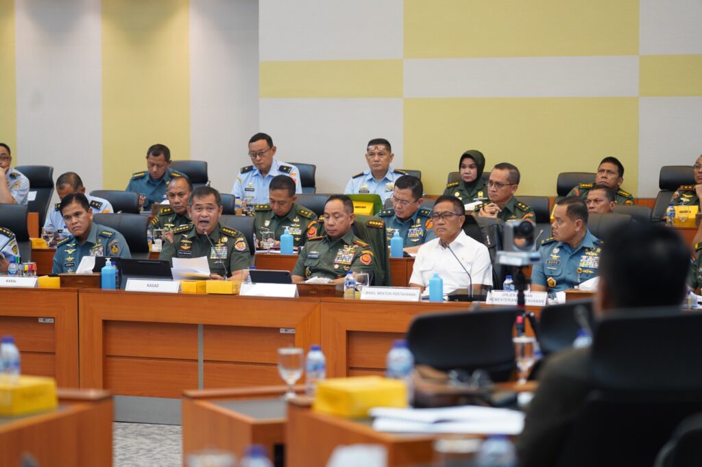 Rapat Kerja Komisi I DPR RI dengan Kementerian Pertahanan RI itu sendiri membahas efisiensi anggaran di kementerian dan lembaga negara sesuai dengan Inpres No. 1 Tahun 2025. (Dispenad)
